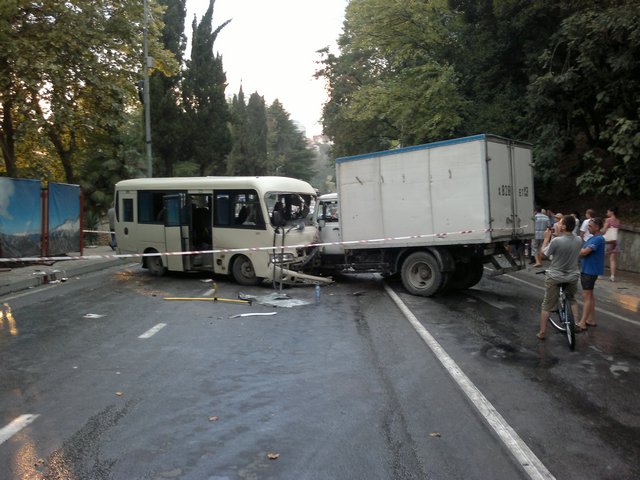5 августа в Сочи около половины восьмого вечера в районе 183-го километра автодороги «Джубга – Сочи» произошло ДТП, в котором пострадали четыре человека. Водитель, управляя автомобилем «ГАЗ-27901», по предварительным данным, выехал на полосу встречного движения и столкнулсяс маршрутным автобусом «ХЮНДАЙ КАУНТИ». Один из четырех пассажиров следовавших в автобусе с травмой, не опасной для здоровья, госпитализирован. Троим, медицинская помощь оказана на месте аварии и назначено амбулаторное лечение.